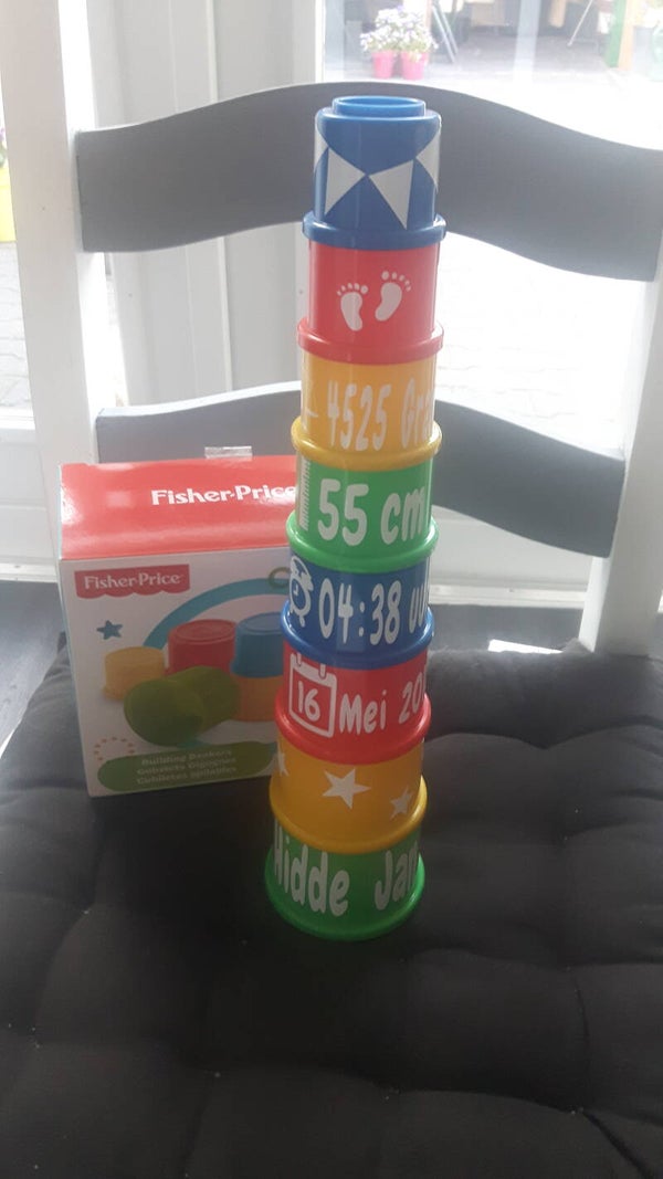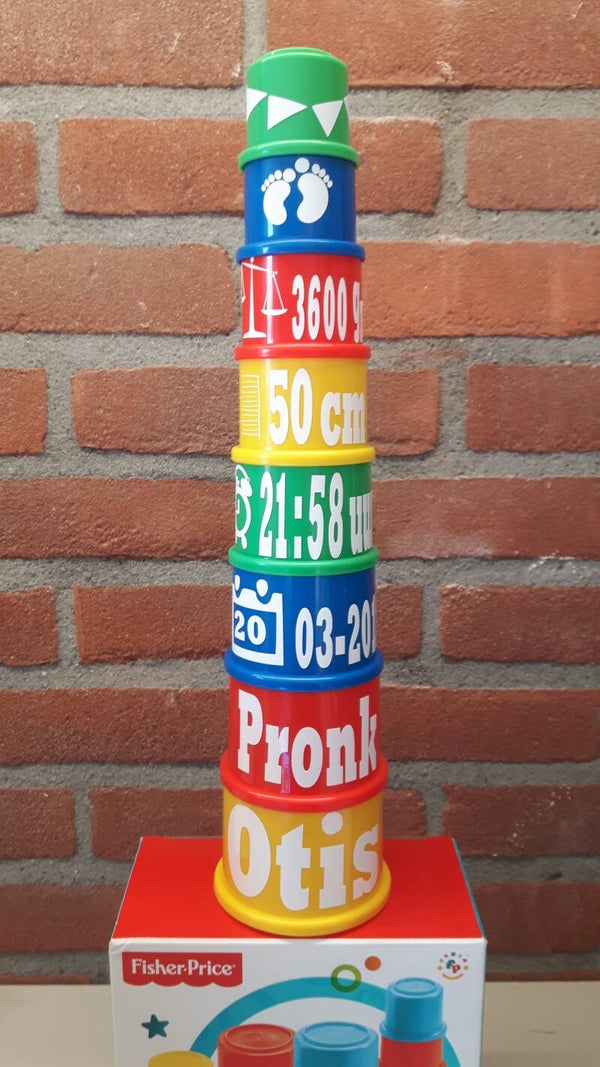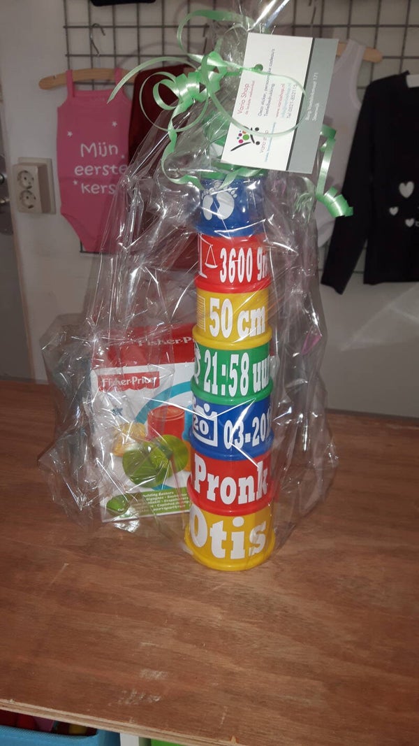 Met naam, datum, gewicht, voetjes, handjes, etc...