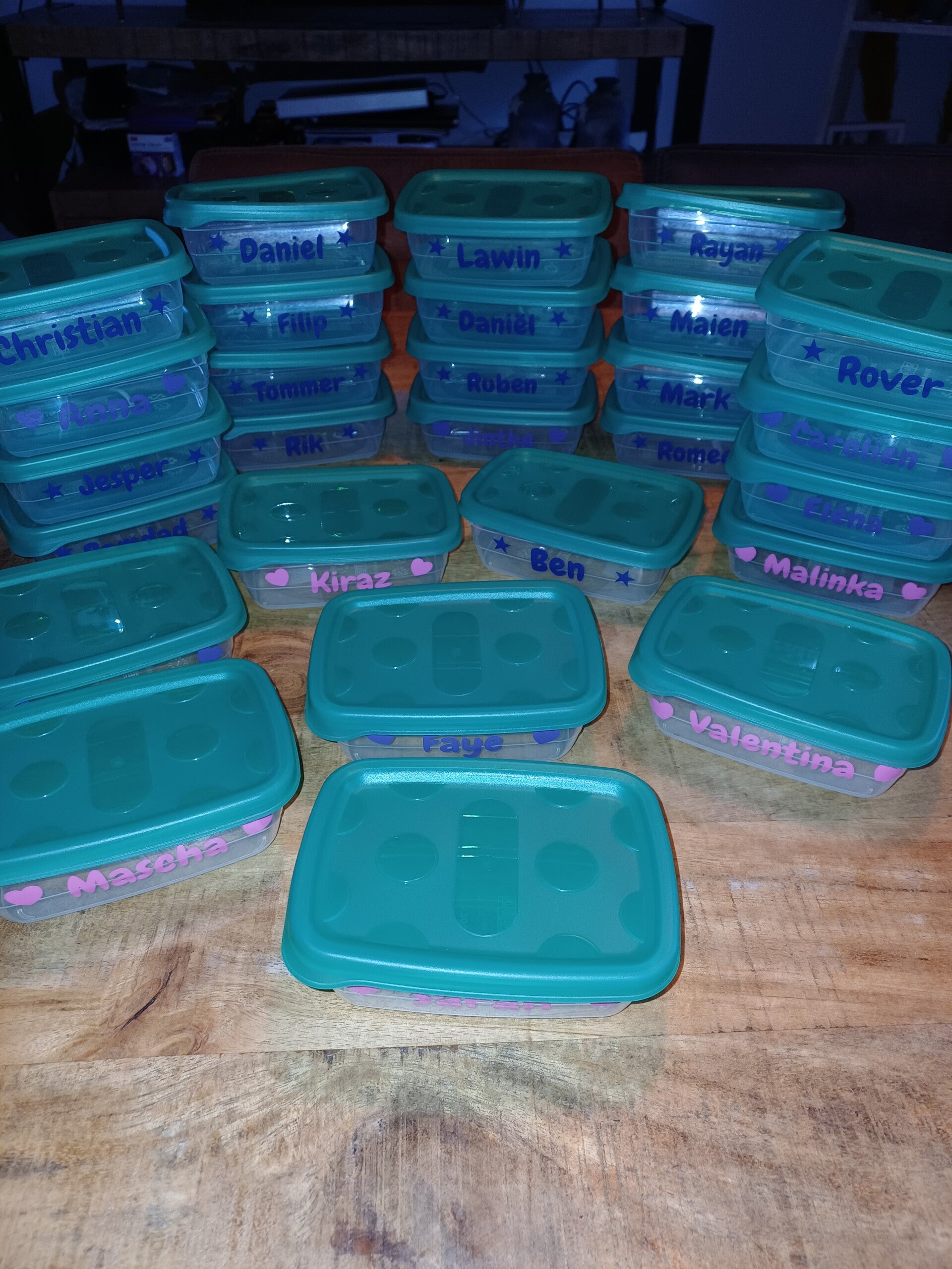 Kleine bakjes voorzien van naam