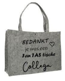 Vilten shoppers zijn hip, stoer en trendy. De vilttassen hebben door het materiaal gebruikt een luxe uitstraling. De vilttassen kunnen keer op keer hergebruikt als boodschappentas, boekentas of strandtas of goodiebag.